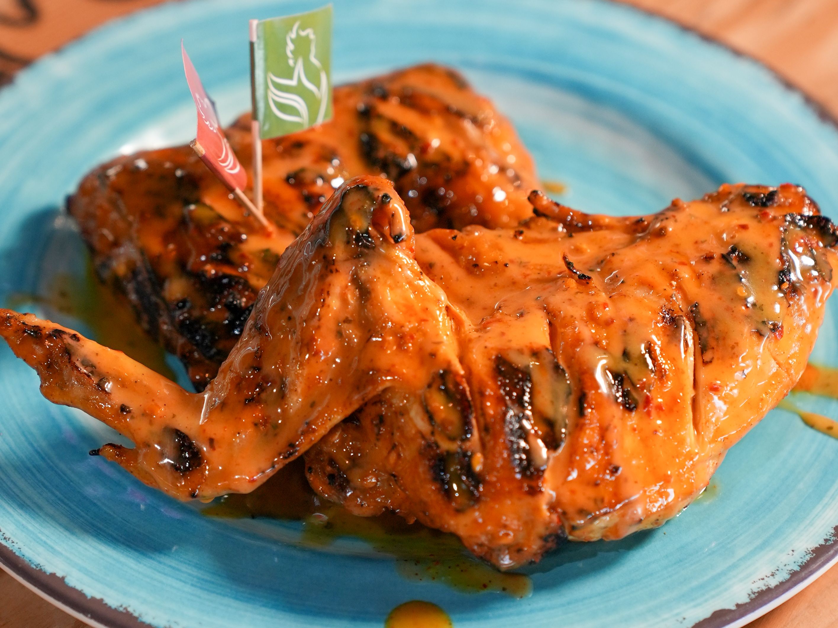 Marinated party-wings, flame grilled to PERIfection. Marinated chicken wings, steamed, grilled and basted on the grill with your choice of sauce. Pick from 3, 6 or 12.