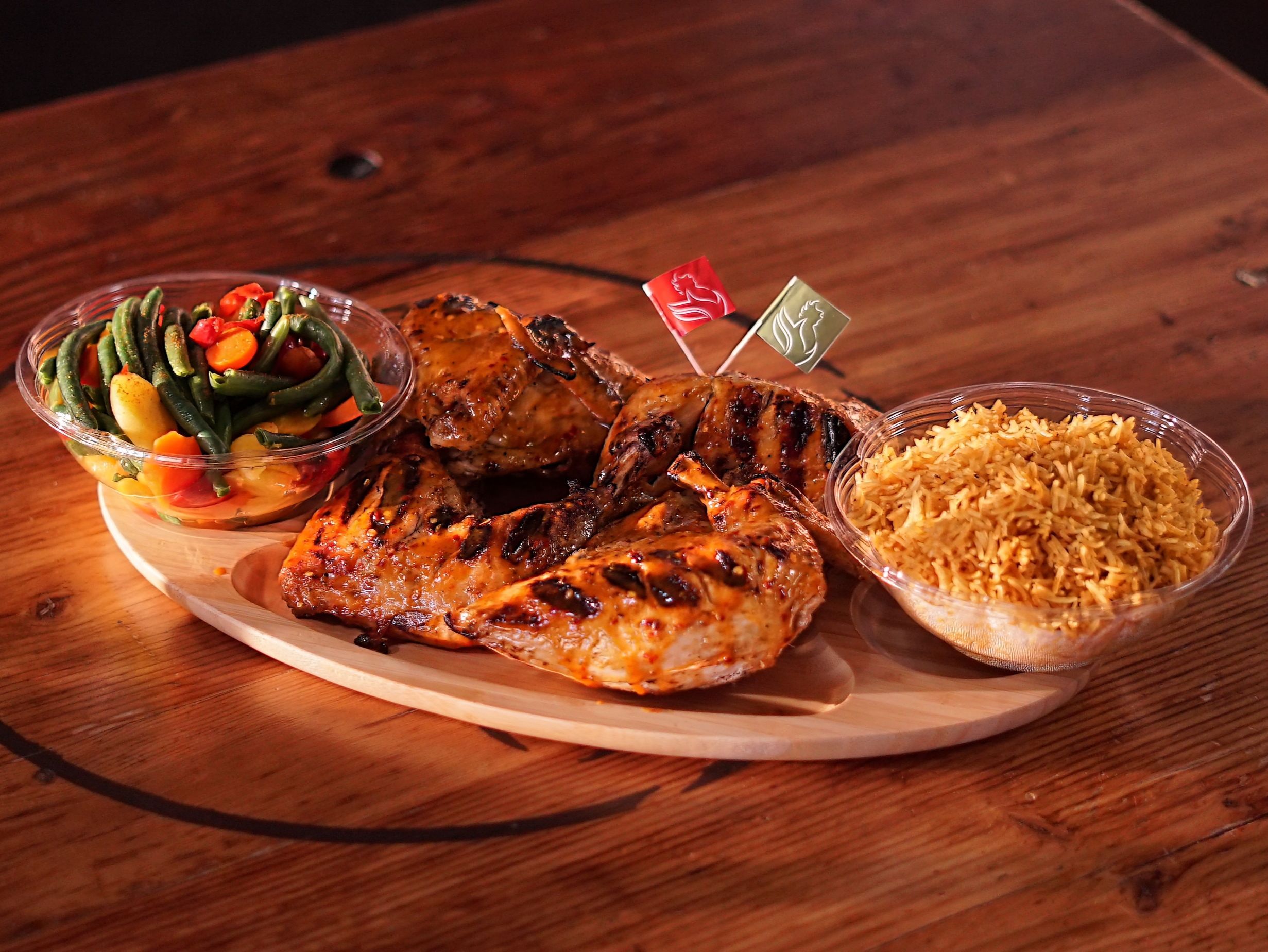 Ideal for 2-3 people. One full grilled Peri Peri Chicken with your choice of 2 Large sides.