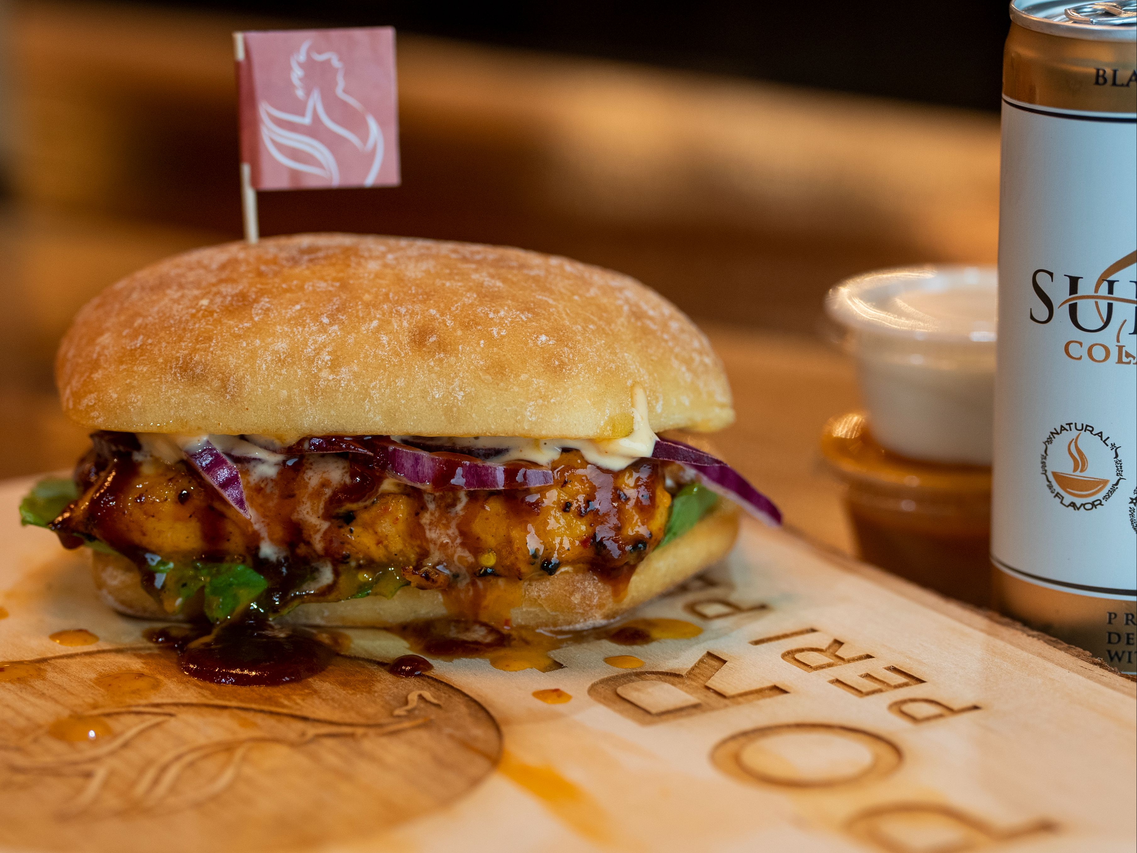 Peri chicken tenderloins on a fresh toasted ciabatta bun spread with our signature homemade PeriMayo with fresh romaine lettuce, fresh cut tomato, fresh red onions and a hint of our home made PeriBBQ sauce.