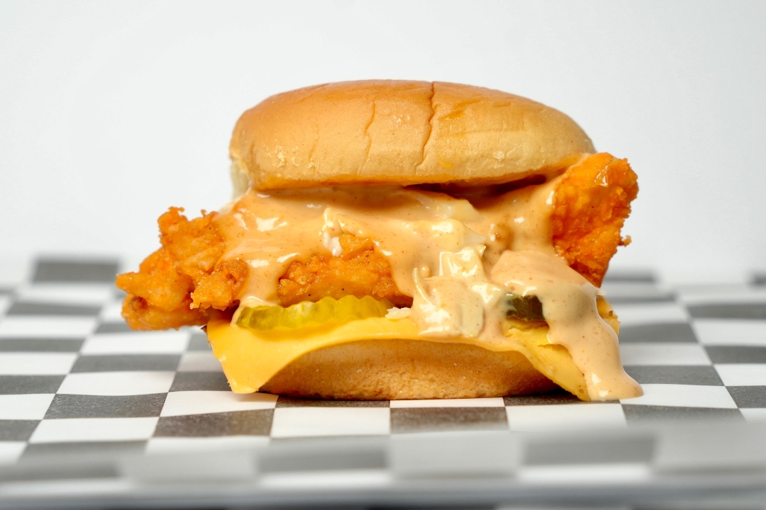 Signature Hot Chicken Sandwich that comes with cheese, coleslaw, pickles and our signature Slaw sauce