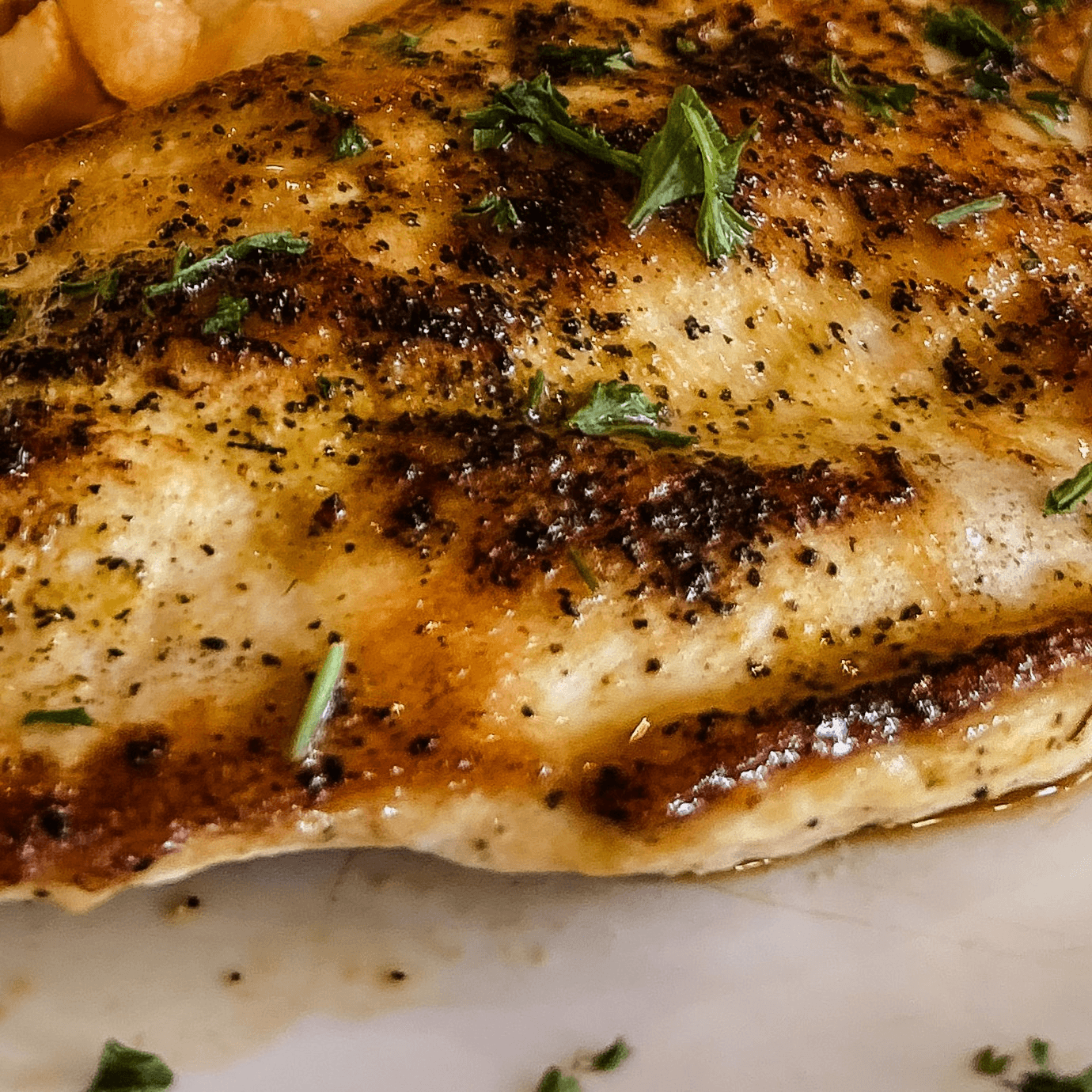 Fresh tilapia generously dipped in our homemade lemon-butter sauce and coated in our famous blackening seasoning. Served with mashed potatoes, steamed broccoli and side of zesty mango sauce